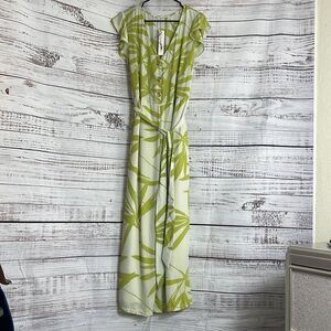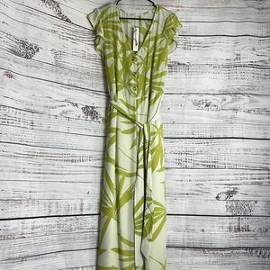 June & Hudson Jumpsuit Womens Plus Size 1X Chiffon leaf print Ruffle Belted MWT