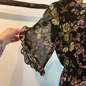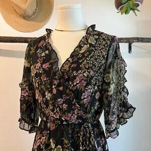 June & Hudson Moody Whimsical Ruffled Floral Printed Short Sleeve Size Small