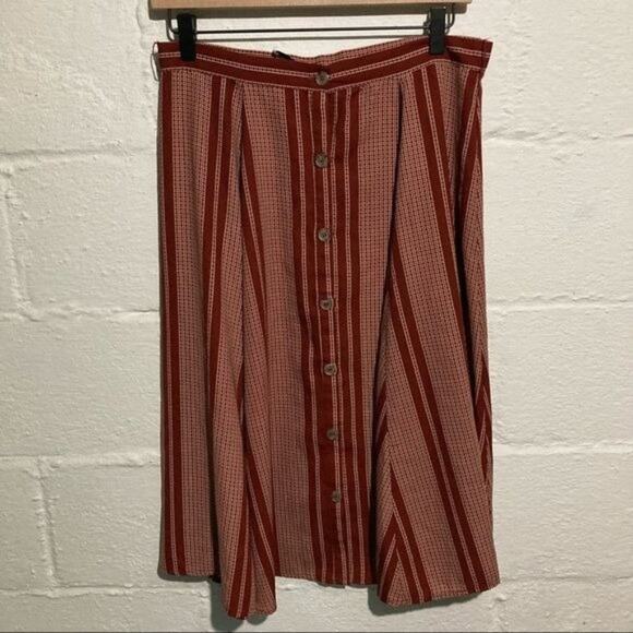 June & Hudson Striped Button Front Midi Skirt - Size L