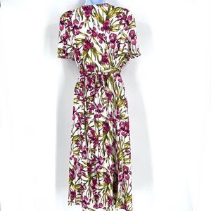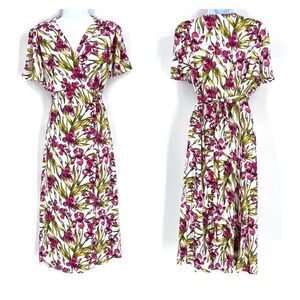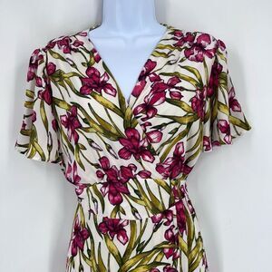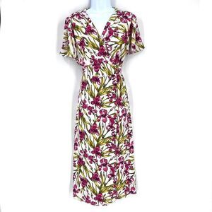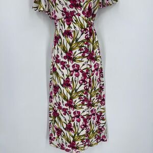 June & Hudson Women's Floral Wrap Dress Maxi Spring Tie Back pink White Size large