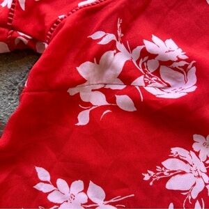 June & Hudson size 1X 100% polyester red & white floral blouse with an open keyhole back. See photos for approximate measurements. Very light, flowy and feminine! Dress this top up for a night out or pair it with some jeans.