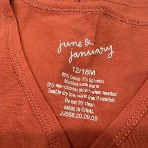 June & January long sleeve snap shirt size 12-18 months. Solid pumpkin spice looks like a cardigan but lightweight like a t-shirt. So cute for a light fall layer! Excellent condition.