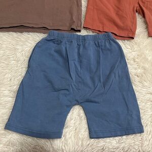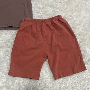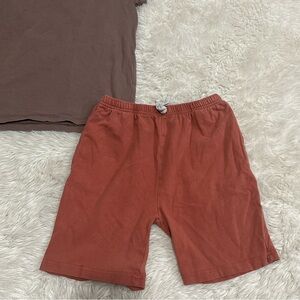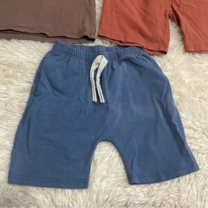 June & January bundle includes a Brown Tee, Rust Shorts & Blue Shorts all size 7/8 best for 5/6 or 6/7
