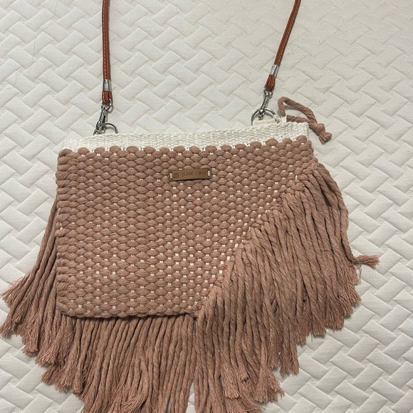 Handmade in North Carolina . Boho Pink fringe crossbody