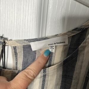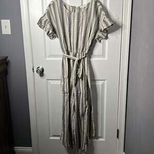 June and Hudson Gray and Cream Striped Short Sleeve Jumpsuit Size 1