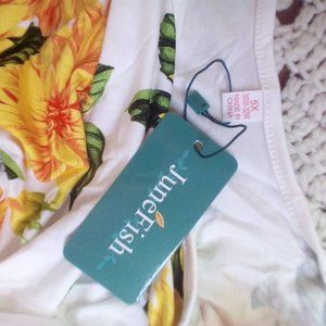 JuneFish Women's Summer Pleated Short Sleeve Tunic Tops Flare Blouse