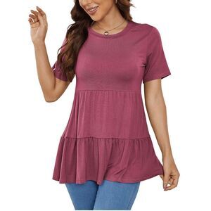 JuneFish Women’s Mauve Jersey Knit Short Sleeves Baby Doll Top
