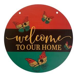 ✔ 1 Round Sign: “Welcome To Our Home” with colorful butterfly accents (pre-drilled holes for easy attachment)
