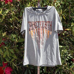 Celebrate and advocate! Soft gray short sleeve tee with multi shade raised fists graphic. Feels inclusive while being a quiet riot that this holiday is no longer being federally recognized. worn once. excellent used condition no marks or issues with the graphic. have a kids sized one as well (although not exactly the same), bundle so you and your mini can match! Listing as Women's but unisex. Can be found on Etsy and Amazon and mmofphilly.com
