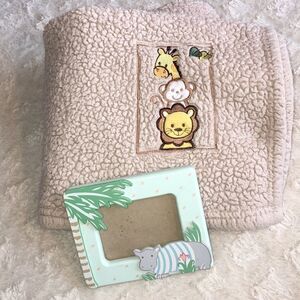 Blanket is super plush, freshly laundered with no rips, stains, tears or holes. Measures 39”X32”