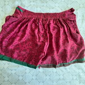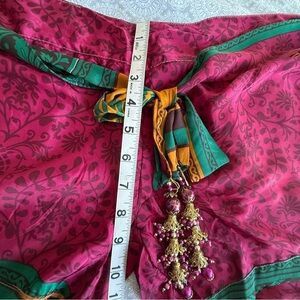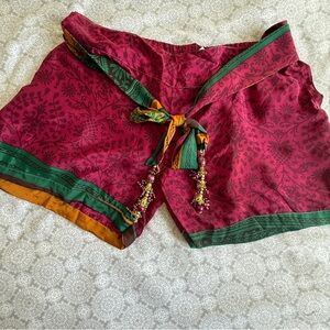 Add a pop of color and flair to your summer wardrobe with these vibrant Junglee Billee boho shorts. Made in India, these statement shorts feature a bold magenta floral pattern, contrasting green trim, and ornate tassel bead accents for an authentic festival-ready vibe. Lightweight and breathable, perfect for casual wear, lounging, or summer events.