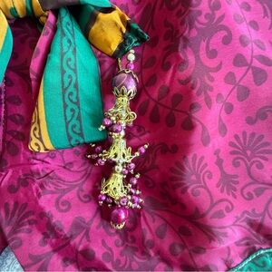 • Color: Magenta with green, mustard, and brown accents