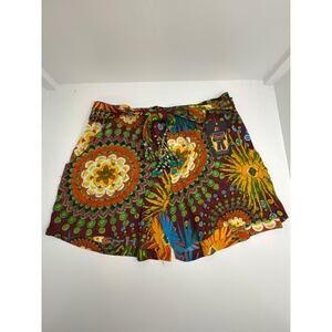 Junglee Billee Boho Mandala Print Viscose Shorts w/ Beaded Tie - S/M