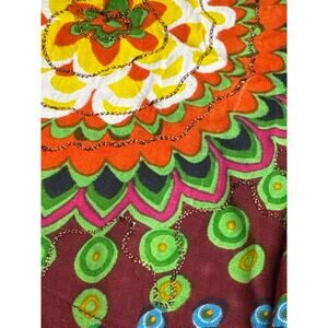 Bold and vibrant bohemian-style shorts from Junglee Billee featuring a multicolor mandala-inspired print in rich tones of red, green, yellow, orange, and blue. Accented with decorative copper-toned stitching that enhances the pattern with a handmade look. Designed with a tasseled tie waist adorned with beaded details, plus functional side pockets. Made from 100% viscose for a lightweight, breathable, and flowy fit—perfect for festivals, vacations, or casual summer wear.