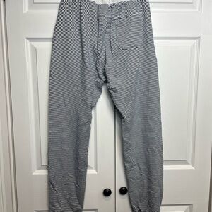 Great quality heavier fabric pants. Size medium but run large. I’m 5”10 and they are long enough/hit the ankle. Great condition.