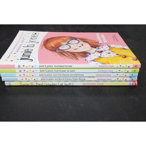This lot of five Junie B Jones books includes Toothless First Grader, Jim's Birthday, and three others. Written by Barbara Park, these books are perfect for young readers who enjoy stories about mischievous boys and girls. The books are in great shape and would make a wonderful addition to any child's library. Get ready to laugh and learn with Junie B Jones!