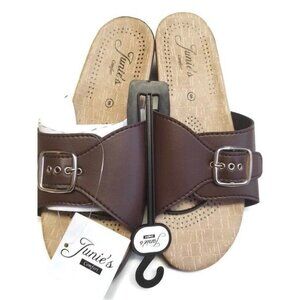 Junie's Women's Comfort Slip On Wedge Sandals Brown Single Buckle Size 8
