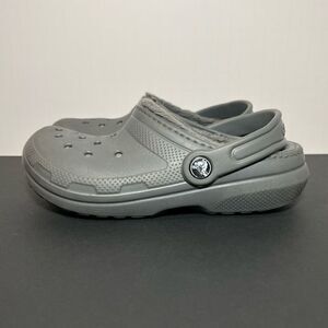 Junior CROCS Dual Comfort Gray Faux Fur Lined Slip On Clogs / Size 2