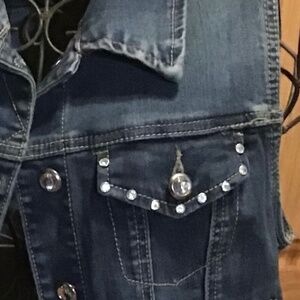 Earl Jeans junior size M Denim vest. The vest has rhinestone accents and fits really cute. Worn once, excellent condition.