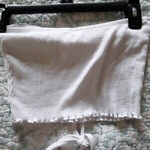 Junior Destined Size Medium White Halter Crop Top w/ Tie Neck