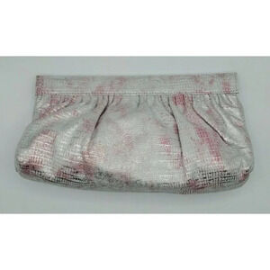 Junior Drake Leather Pink Gold Iridescent Clutch w/Metal Flex Kiss Closure