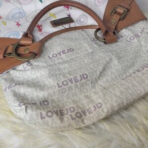 Junior Drake Love JD White Leather Novelty Print Shoulder Bag