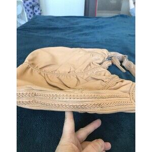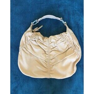 This is a soft leather hobo purse from Junior Drake, features woven details at the trim and handle, gathered ruffle style throughout the body. Wear on leather, please see pictures for details.