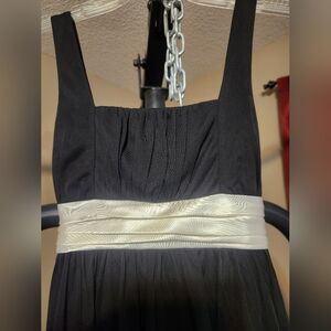This elegant black dress features a stylish white waistband, perfect for any occasion. Its classic design offers a timeless look.