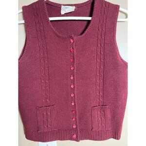 Junior House Vtg Sweater Vest Burgundy Button Preppy Heritage Academia Womens S