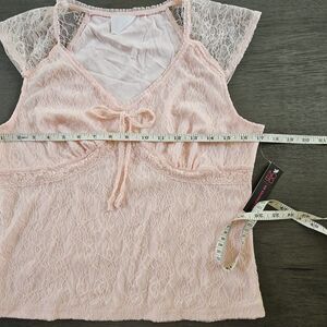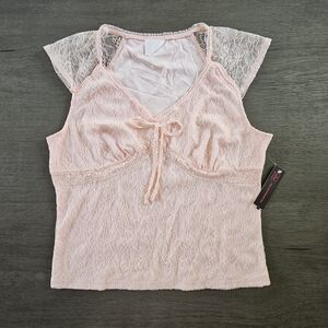 Junior Lace Babydoll Top Pink Cap Sleeve Y2K Fairy Coquette Large Bow NEW
