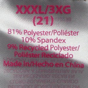 Material, Fabric or Fiber Content: 81% Polyester, 10% Spandex, 9% Recycled Polyester