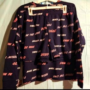 Junior Size Valentine Sleepwear Boxy Sweater and Short Set. Terry Cloth feel material. Short with Wait Elastic. Shorts have Buttons as design, not functional.