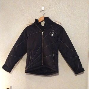 Junior's 10 Spyder Black Snow/Ski Zip up Snow Jacket Coat with Pockets