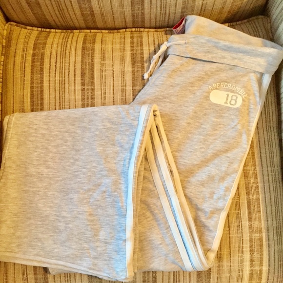 JUNIORS Abercrombie Gray Lightweight, fold over Track Pants, XL, 34" inseam. Equivalent of a ladies Medium. Hidden tie at waist. Abercrombie logo in White lettering across the Backside and small logo on the front hip area. Fantastic lounge or exercise Pants! Nice Condition!! ✨