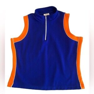 Juniors Carolina blues sleeveless crop top ribbed orange & blue front zip top L.