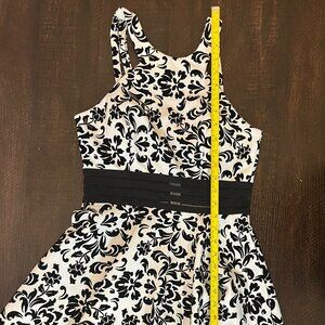 Juniors City Studio Fit and Flare White Dress w/Black Velvet Design Size 9