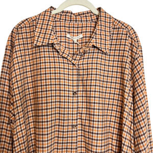 Juniors Copper Key Flannel Shirt XXL Autumn Colors Plaid Long Sleeve Cotton Blend Orange Brown NEW flawed