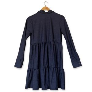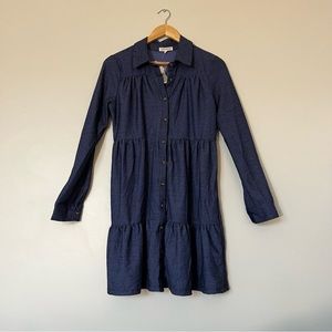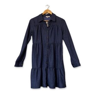 Denim gets the cutest update in this long-sleeve dress from Ultra Flirt designed with a shirt-style collar and a button-down front.