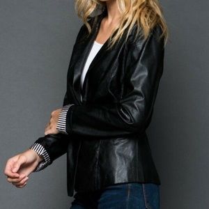 Junior's Faux Leather Blazer Jacket Coat Black Sli
