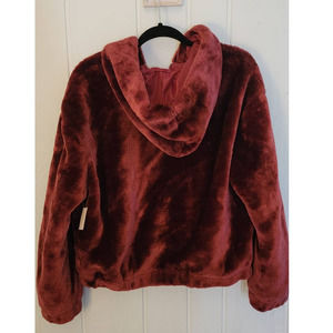 Brand New With Tags - Juniors faux fur, fuzzy zip up jacket/hoodie. Size XL - Burgundy/Wine Red/ Maroon - Originally Sold at Rue 21