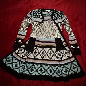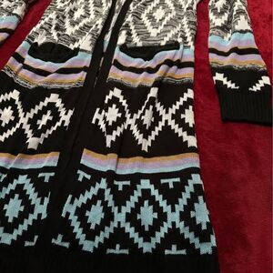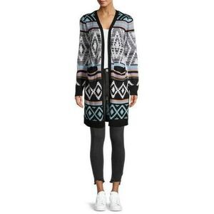 Juniors Girls Aztec Print Knit Sweater Duster Cardigan