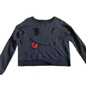 Juniors Graphic Sweatshirt Smiley Face Long Sleeve Top Gray Size L