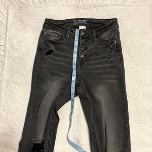 Juniors High Waist NO Boundaries Skinny Jeans Size 3 Distressed Gray and Black