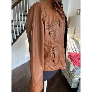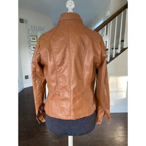 Juniors J2 by Jou Jou Euro Fit Faux-Leather Tobacco Light Brown Jacket: size XL or fits like a Women's small)