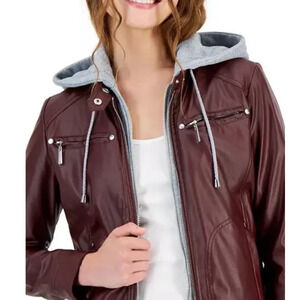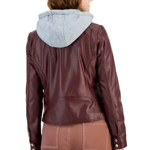 Juniors' Jou Jou Faux-Leather Hooded Moto Jacket Small NWT