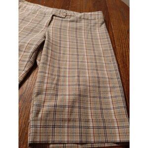 Good Used Condition Juniors Jr Size 11 Tan, Brown, Blue Plaid Mid Rise Bermuda Shorts with Cuffed Hem