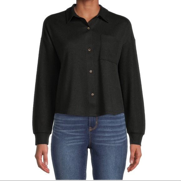 Brushed hacci body with cuffed ribbed sleeves