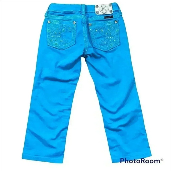 Juniors Miss Me Size 14 Capri in Rich Turquoise Beautiful Color ❤️. This is truly a rich Turquoise. The camera will not pick up the true color. Measurements are in the pictures. Let me know if you have any more questions. Happy Poshing. Also please check your measurements to make sure these capris will work for you thank you.