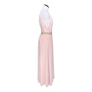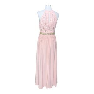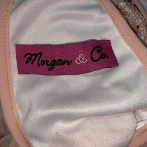 Juniors Morgan & co formal midi dress gown prom small pink keyhole back sequins
