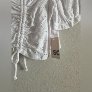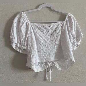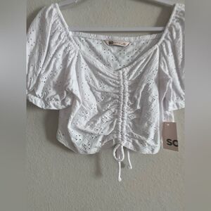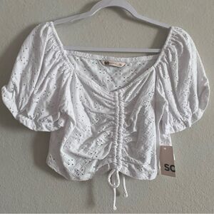 Juniors’ NWT SO Eyelet Cinch Front Puff Sleeve Cropped Top White Size XXL